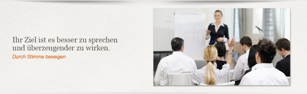 Im Sprecheinzelcoaching können Sie gezielt an der Verfeinerung Ihrer Stimme sowie der Wirkung Ihres Auftritts in Zusammenarbeit eines Dozenten Ihrer Wahl weiterarbeiten.